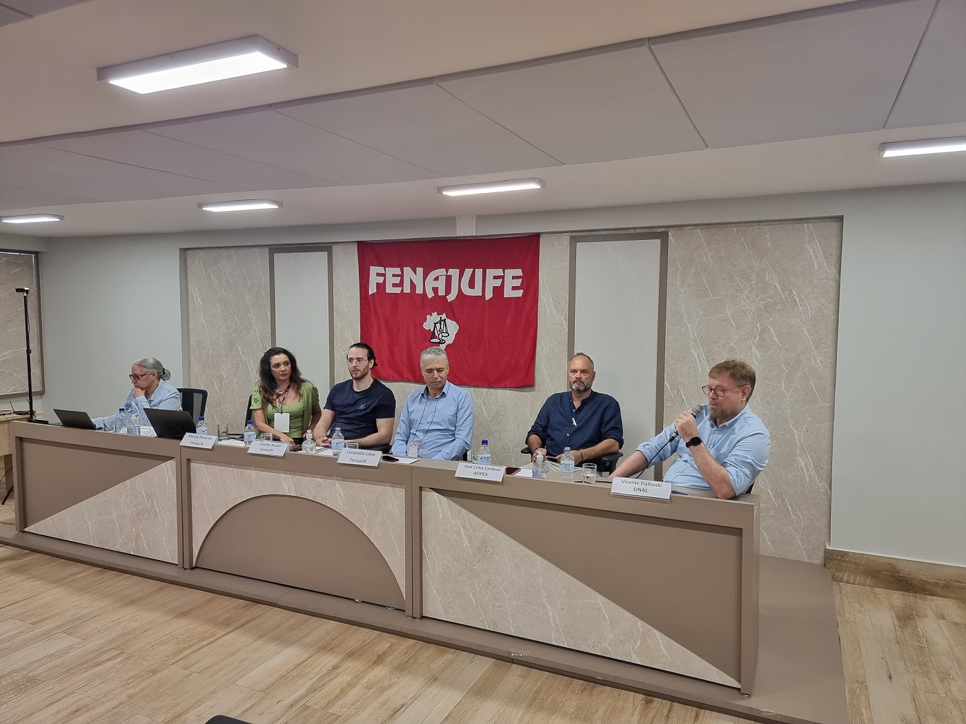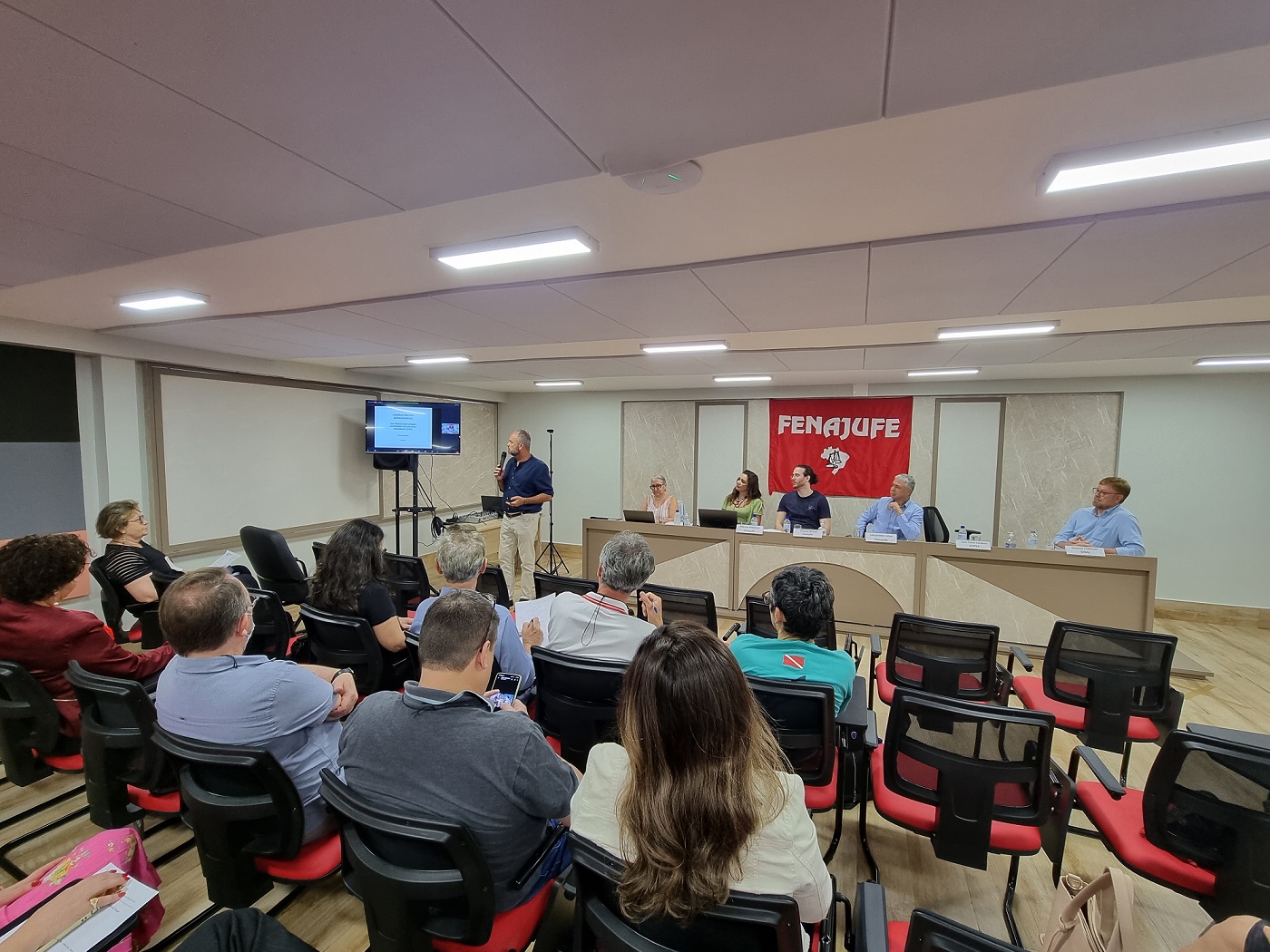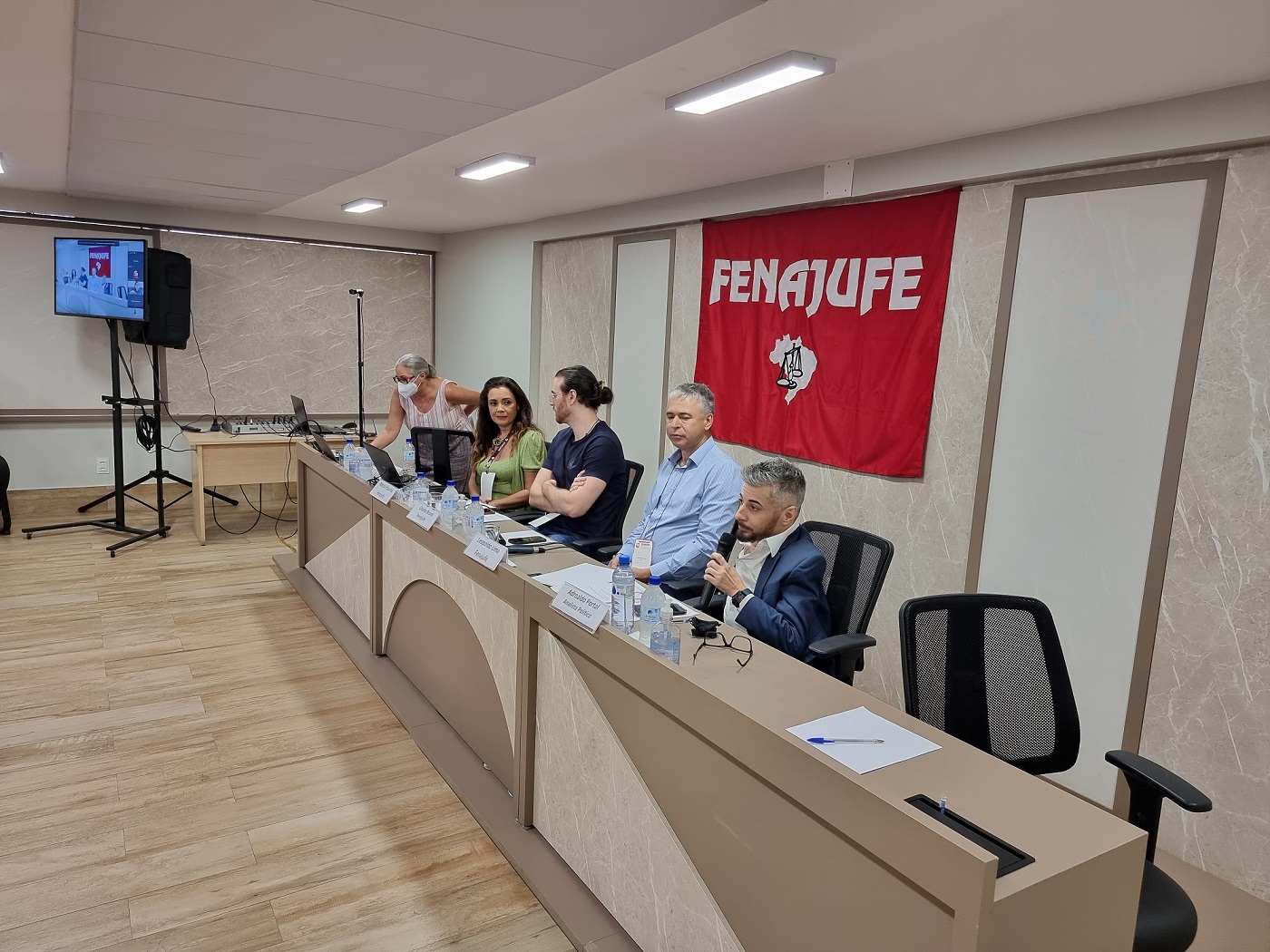 Começou na manhã deste sábado (3), em formato híbrido, o Encontro do Coletivo Nacional de Analistas da Fenajufe (Conan) com debates importantes para o segmento. Os painéis da manhã trataram de carreiras públicas e desenvolvimento, histórico de lutas dos servidores do Banco Central e perspectivas para os servidores no terceiro governo Lula.