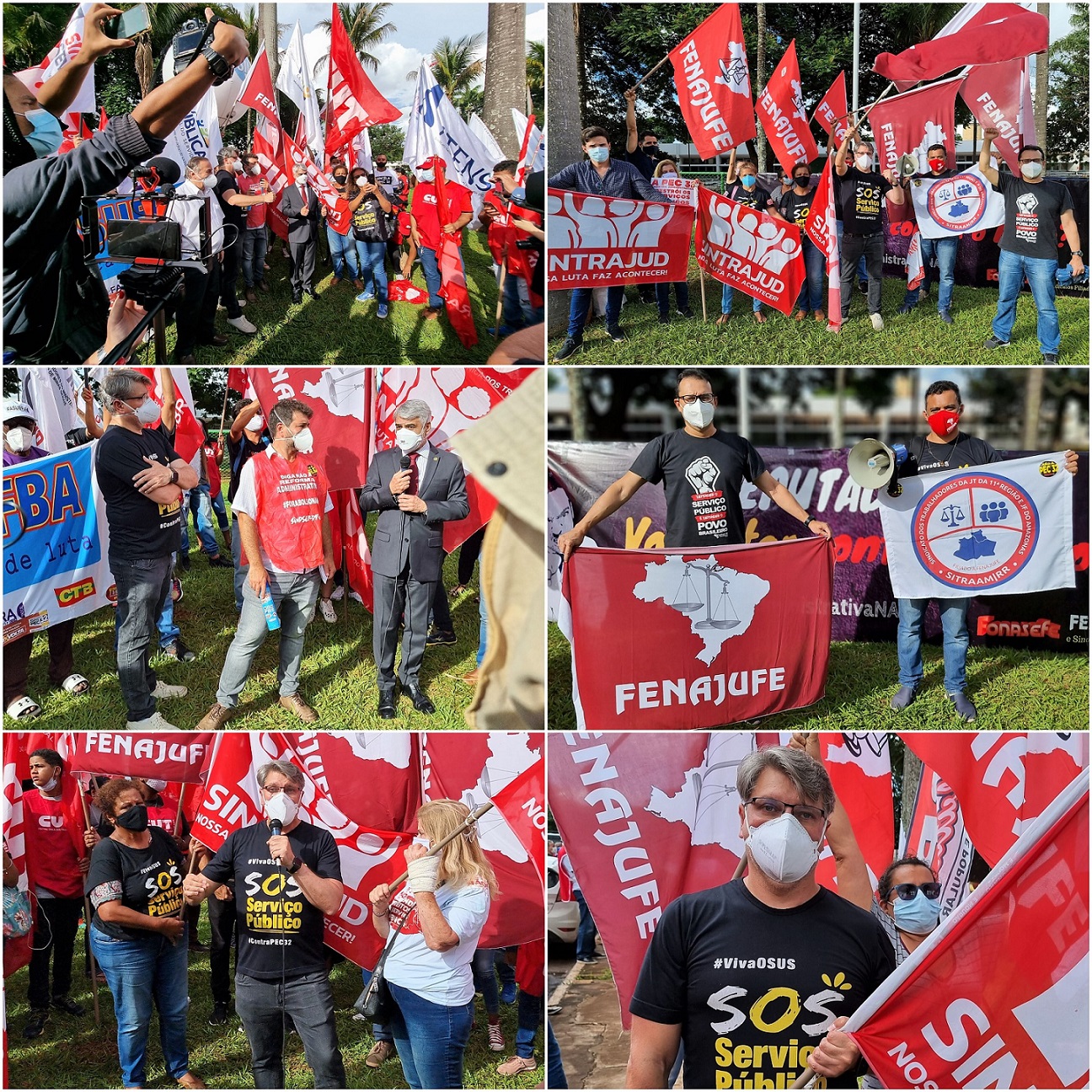Fenajufe, Sindicatos de base, entidades do Fonasefe e de diversos segmentos do funcionalismo seguem mobilizados na capital federal. Pela Federação, participação dos coordenadores Engelberg Belém, Fabiano dos Santos e Luiz Cláudio Correa. Da base, representantes do Sitraam-AM/RR, Sintrajud/SP, Sintrajuf/PE, Sintrajufe/CE, Sindjufe/TO e Sintrajufe/RS.