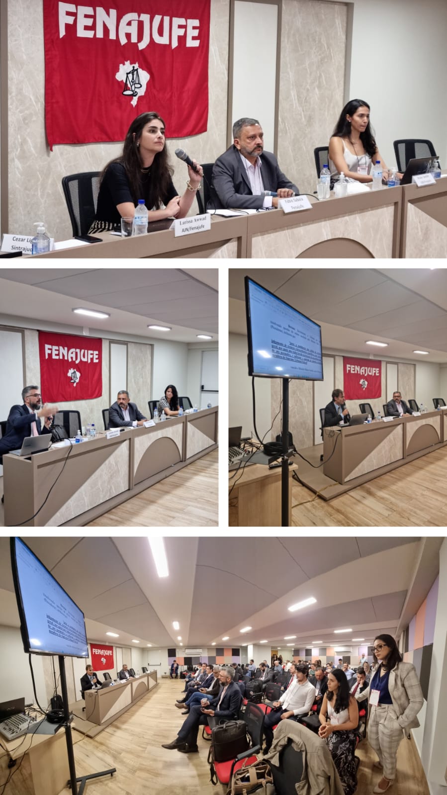 Foram retomados na tarde desta sexta-feira, 18, os trabalhos do XXVI Encontro Nacional do Coletivo Jurídico da Fenajufe. Sob coordenação de Fábio Saboia, a primeira mesa da tarde trouxe a advogada Larissa Awwad, da Assessoria Jurídica Nacional da Federação, discorrendo sobre as iniciativas da Fenajufe para uniformização e estabelecimento de piso mínimo do Auxílio-Saúde no âmbito do PJU e MPU.
