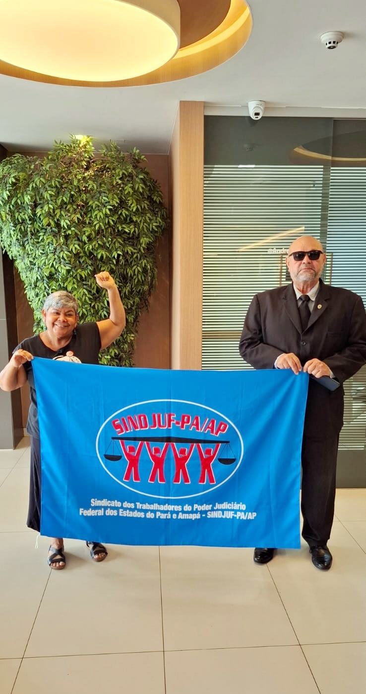 O Sindjuf-PA/AP se fez presente ao ato representado pela coordenadora de Administração e Organização Sindical, Conceição Mota (Ciça) e o servidor filiado, Marcelo Monteiro Garcia de Melo (APJ), do TRT/8ª, que reforçam a mobilização nacional chamada pela Fenajufe pela reestruturação da carreira e para pressionar o Congresso pela derrubada do veto 45/2025.