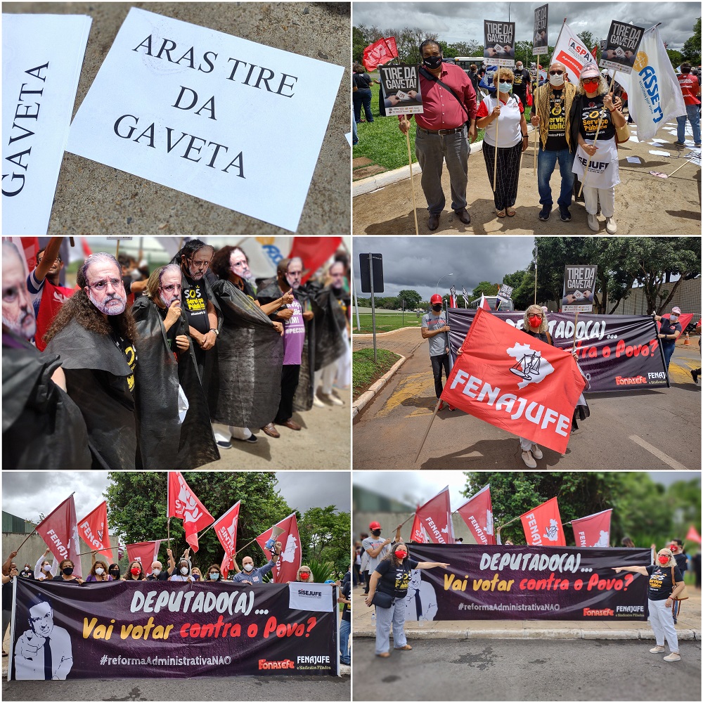 Em mais um dia de luta e mobilização em Brasília contra a reforma administrativa (PEC 32/20) e pelo #ForaBolsonaro, servidoras e servidores de todo o País foram até a Procuradoria Geral da República (PGR) cobrar de Augusto Aras o prosseguimento do relatório da CPI da Covid que atribuiu nove crimes a Jair Bolsonaro e pediu 80 indiciamentos.