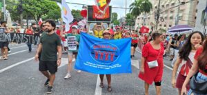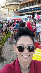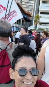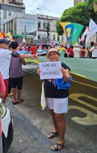 “A sindicalizada Alice Romana, aposentada da Justiça do Trabalho (TRT8a) continua ativa na luta pela democracia e participou do Ato de domingo (14) na cidade de Fortaleza.