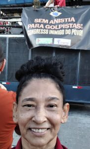 “A proposta apresentada sob o nome de dosimetria é, na verdade, uma tentativa de anistia aos criminosos que atentaram contra o nosso país. Quando vamos às ruas, mostramos que, para além das nossas pautas específicas enquanto categoria, temos o compromisso com a luta política mais ampla, ao lado de outras categorias e movimentos sociais”, afirmou Mônica.