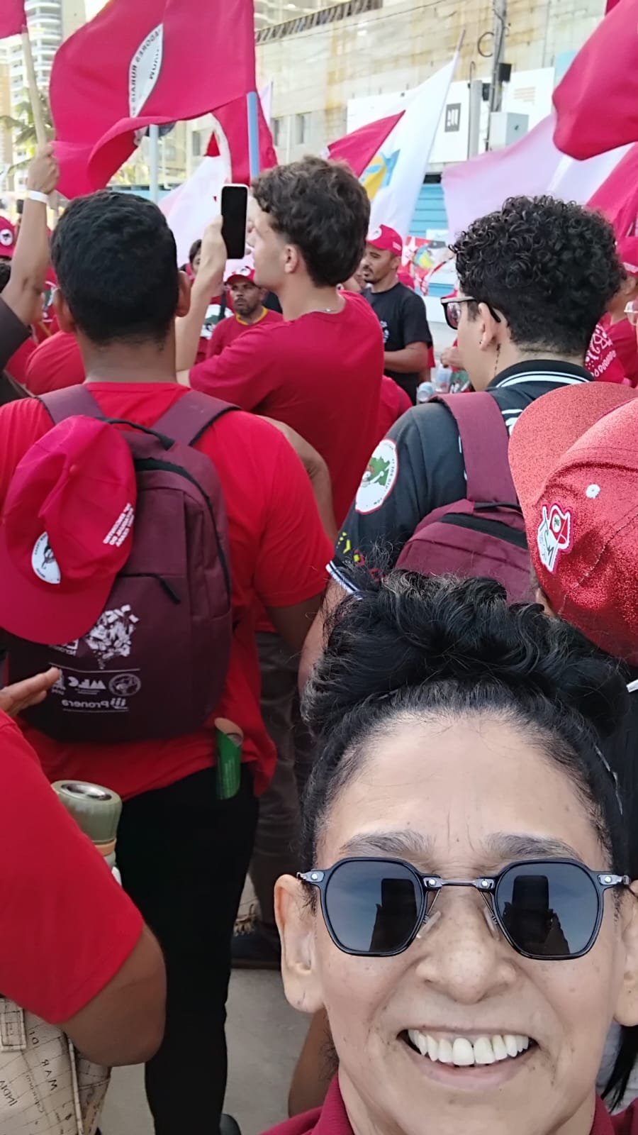 “A sindicalizada Alice Romana, aposentada da Justiça do Trabalho (TRT8a) continua ativa na luta pela democracia e participou do Ato de domingo (14) na cidade de Fortaleza.